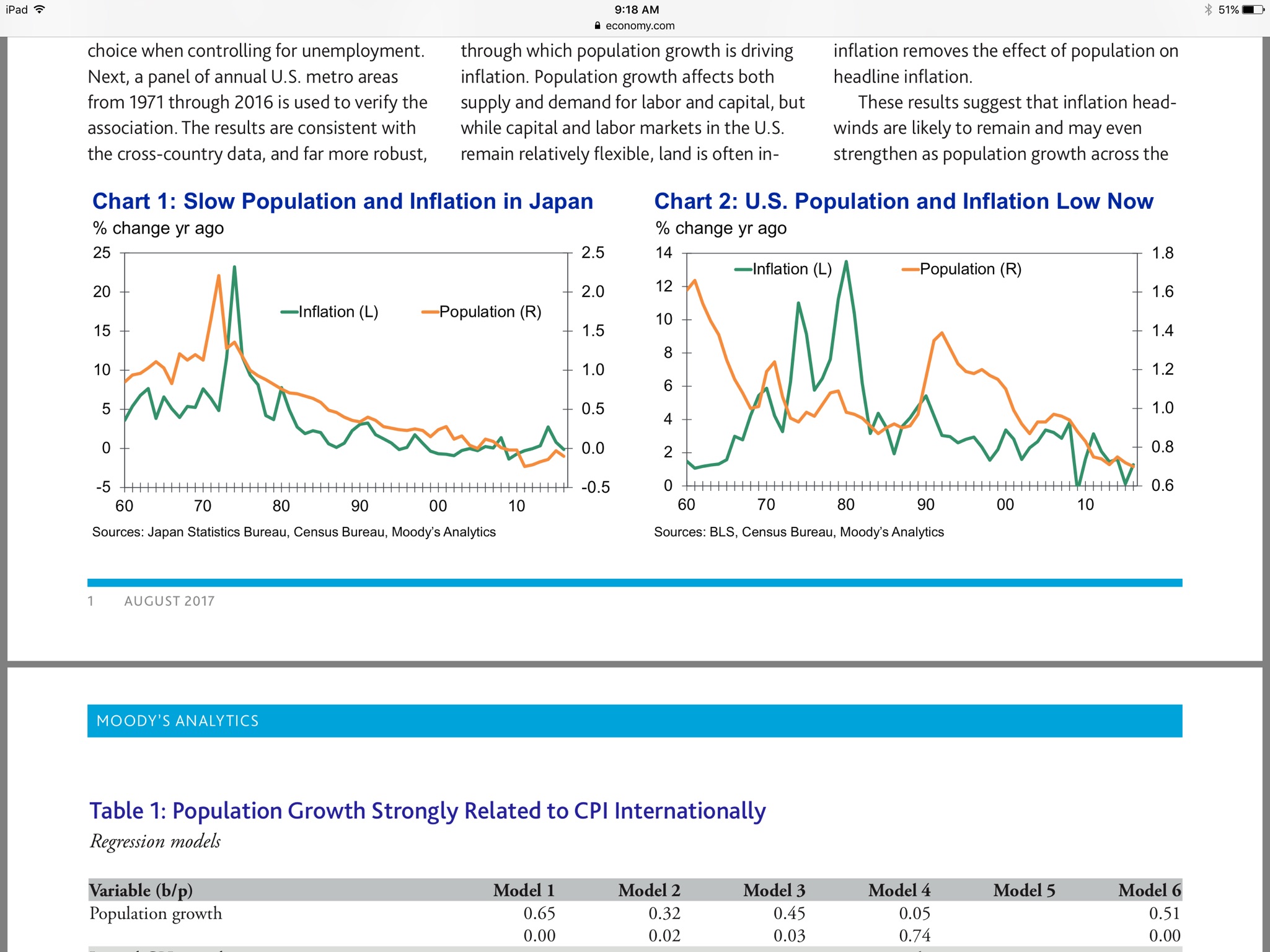 Population Growth and Inflation… Moody’s Analytics