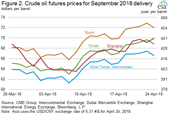The EIA’s This Week in Petroleum compares the new Chinese oil futures contract to the older WTI, Brent and Oman contracts here…
