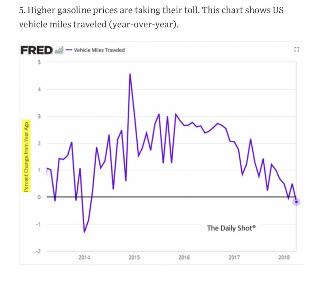 The excellent Daily Shot at the Wall Street Journal has a nice chart that shows flagging gasoline demand: