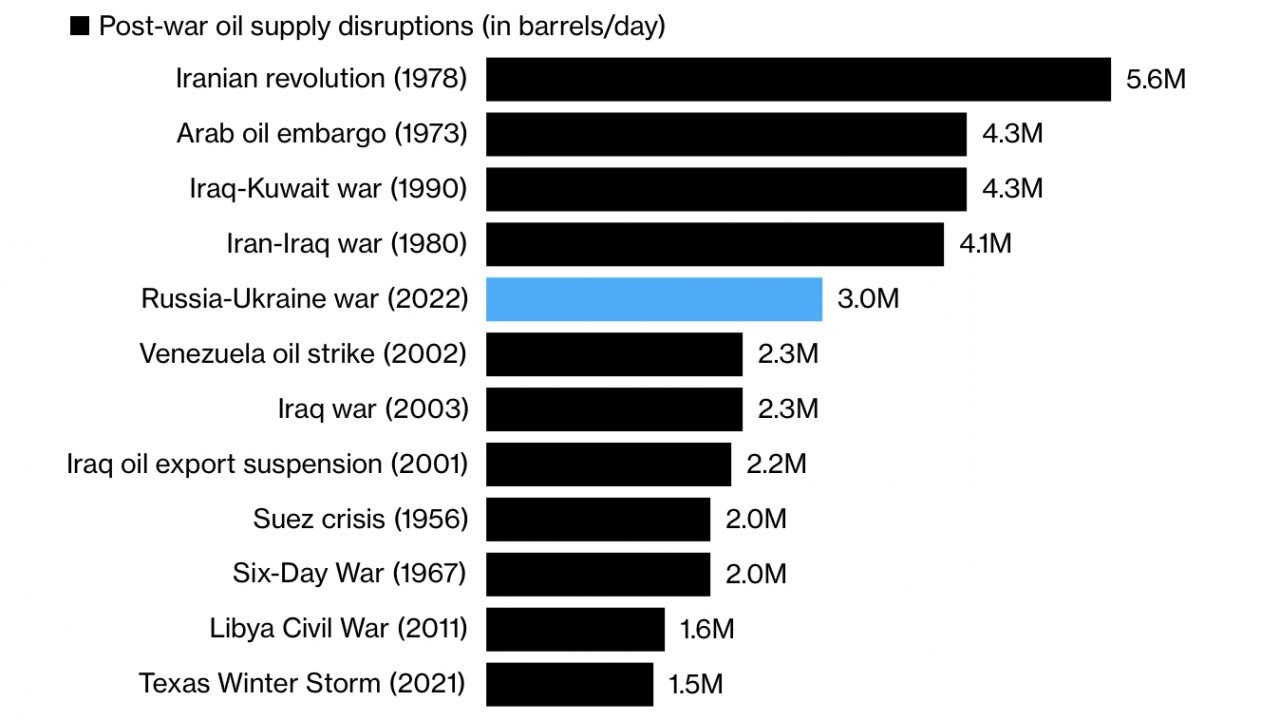 Srinivasan Sivabalan, Bloomberg, references a nice chart by Goldman comparing past oil disruptions with an estimate of the current situation: