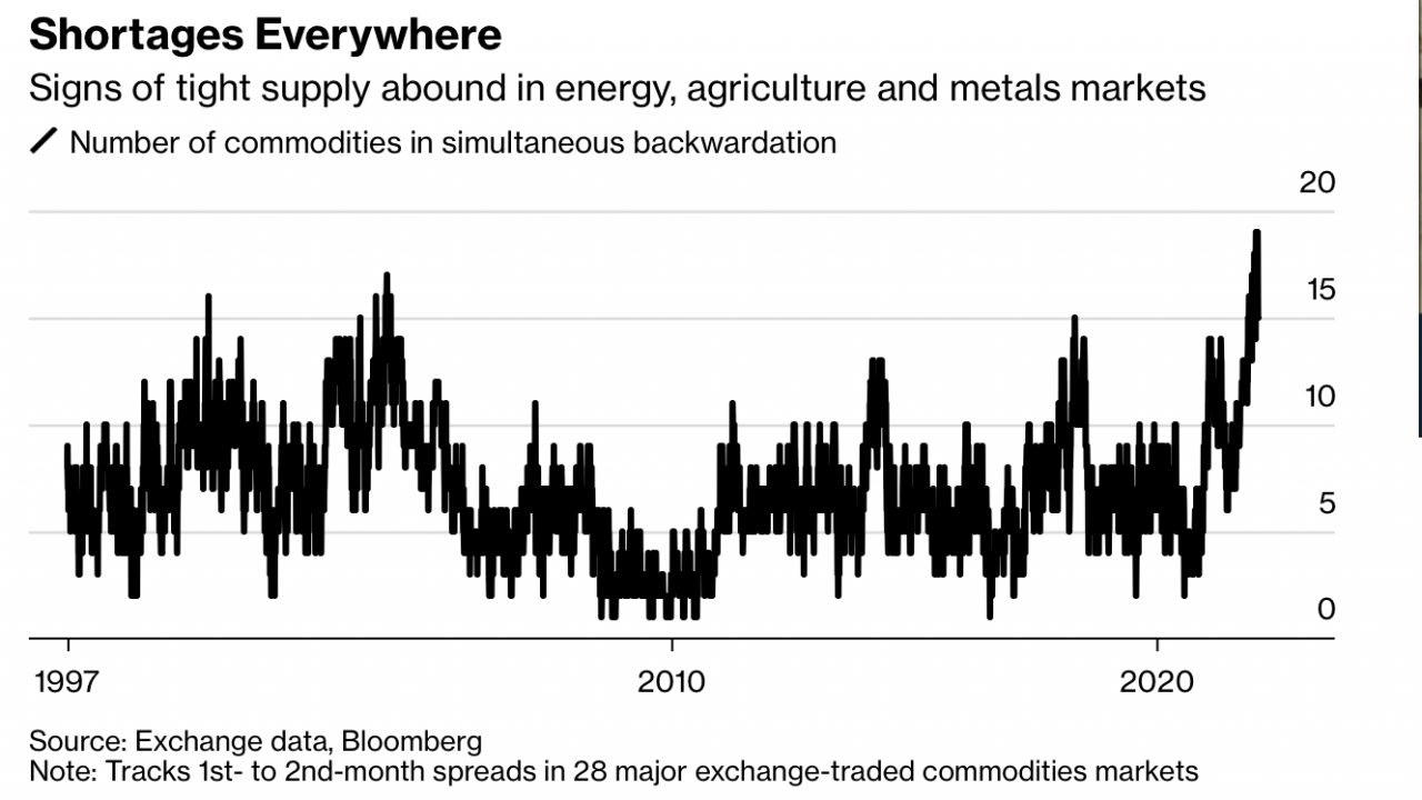 Mark Burton and Alex Longley, Bloomberg, quote a commodity analyst on shortages across the board, here.. ”Commodities trade in backwardation, where