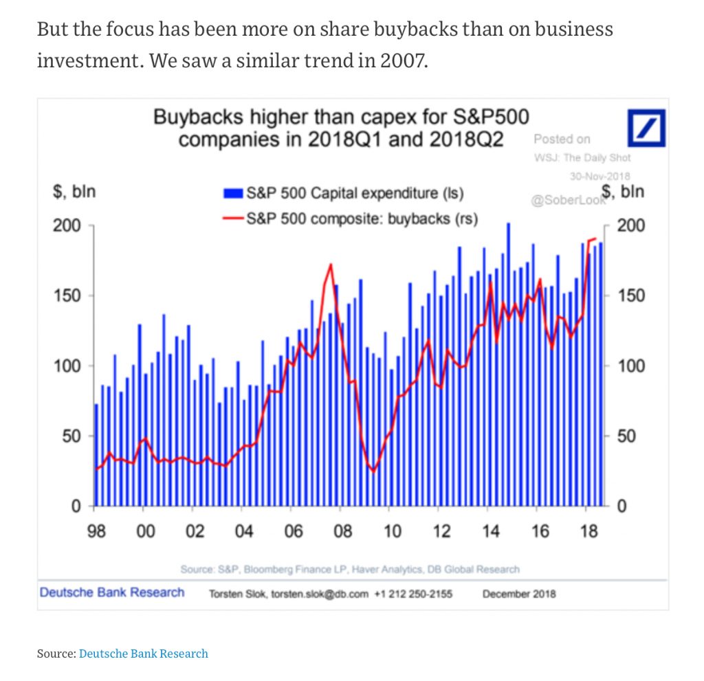 The chart from the Wall Street Journal’s The Daily Shot shows us capex and stock buybacks on the same chart… The link is here…