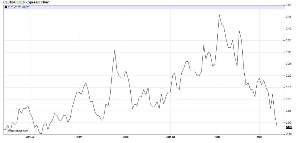 In early February, some deep out of the money put buying occurred in the April/May, May/June and June/July (also, the expired March/April) 0, zero, put option, probably by one trader… The buyer was expecting or hedging against the WTI curve slipping back into contango… Here is a picture of the most open interest in spread options from the CME: