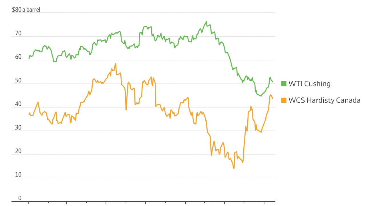 ”Canadian crude prices have surged to trade at the smallest discount to U.S. oil in a decade, marking an early success for provincial-government