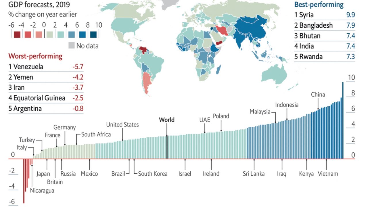 From The Economist, here is a nice chart with GDP estimates for global economies: