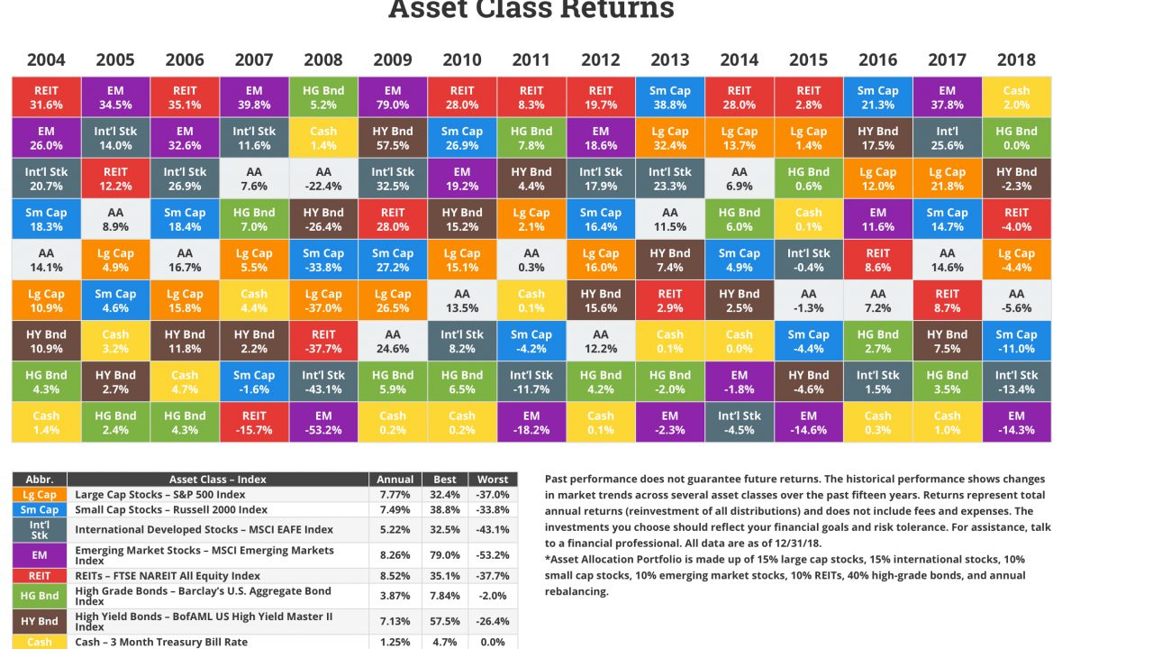 I love these asset return quilts... This one is from Novel Investor, here... And here is one from JP Morgan (cash was trash over the time