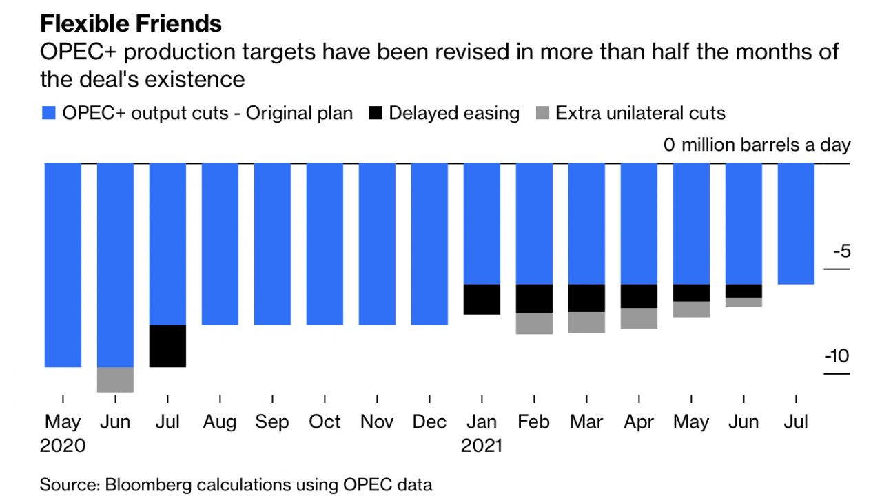 Julian Lee, Bloomberg, writes about the Saudi/UAE rift, here… The piece has a nice chart showing OPEC+ production targets up to now…
