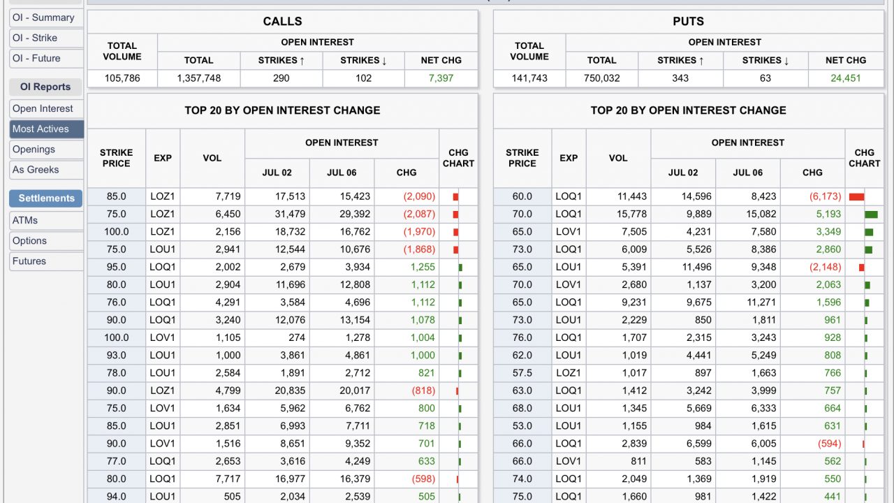 From QuikStrike’s Most Active Strike tool, via the CME, here is a look at the most active strikes from yesterday, post OPEC+ meeting… Volume was