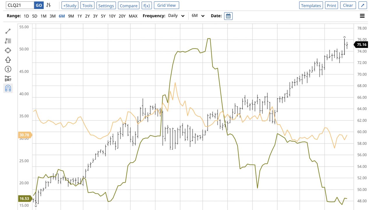 An interesting pattern in WTI volatility has unfolded through the current OPEC+ meeting as displayed by Barchart.com, below… Historical volatility (20