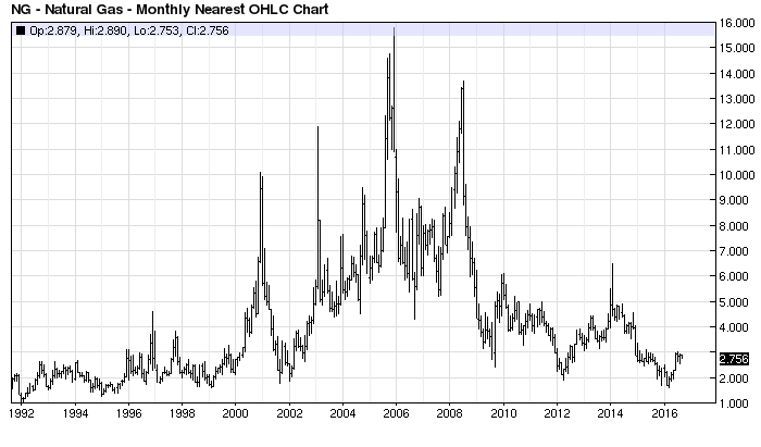 Keep this 25 year price chart of natural gas (from barchart.com) in mind when reading Spencer Jakob's piece in the Wall Street Journal: Here is the