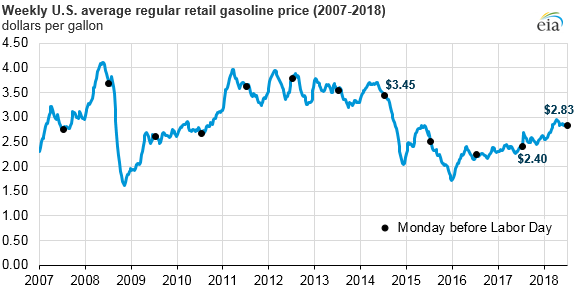 US retail prices heading into Labor Day weekend at 4 year high.. EIA