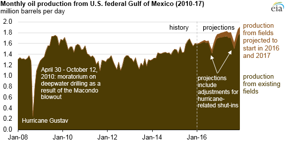 "U.S. Gulf of Mexico (GOM) crude oil production is estimated to increase to record high levels in 2017, even as oil prices remain low. EIA