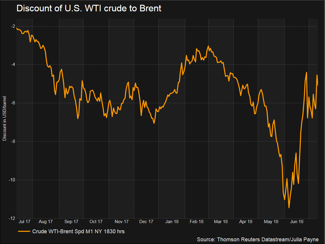 Here is a Brent/WTI crude spread chart from Reuters: From Reuters: “However, it is the big, sudden moves that tend to claim trade