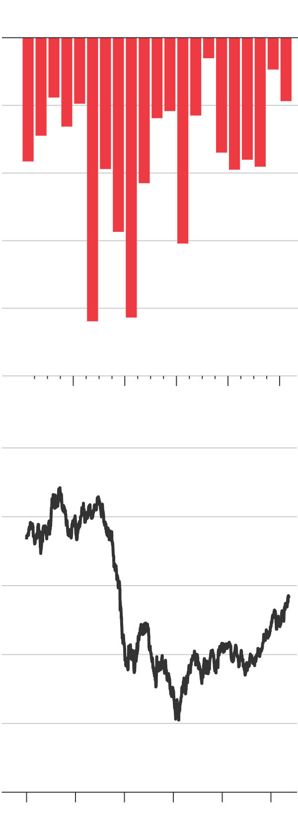 The WSJ’s The Daily Shot, here, always has interesting charts and is worth looking into... Here is the Russian ruble/US dollar rate vs. oil prices:
