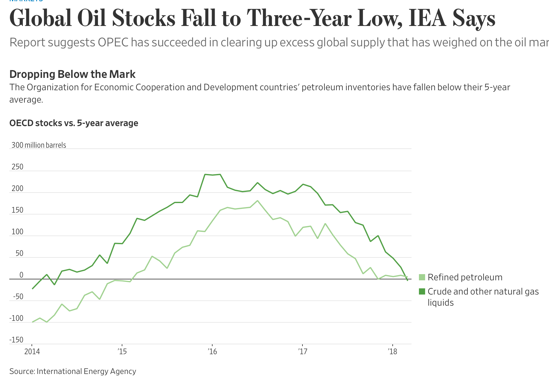 Global Oil Stocks at Three-Year Low… IEA/WSJ