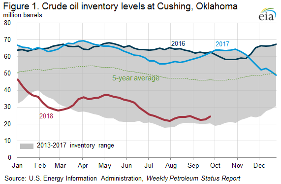 Cushing inventories are sharply lower than last year… EIA