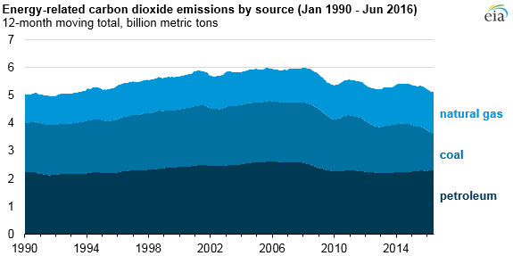 From the EIA's always excellent Today in Energy: "U.S. energy-related carbon dioxide (CO2) emissions totaled 2,530 million metric tons in the first