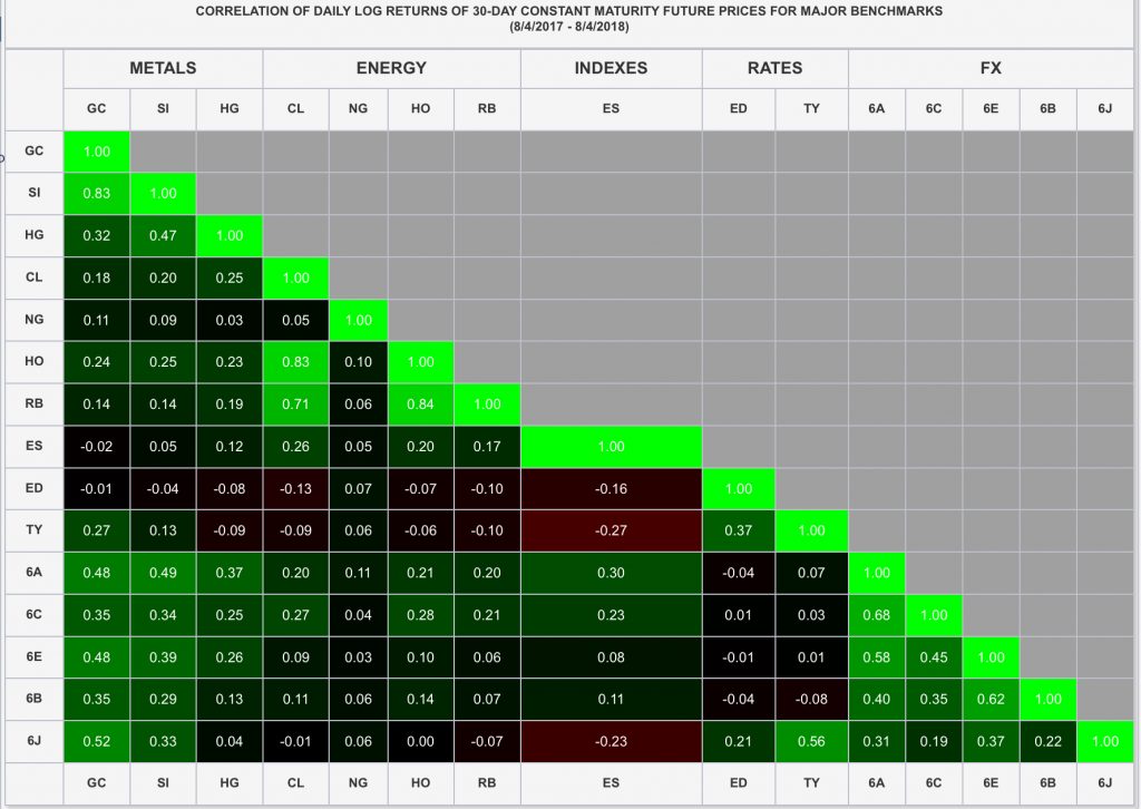 Despite the often quoted analysts who explain a price change in oil as a reaction to a change in the dollar, the CME’s correlation tool here,