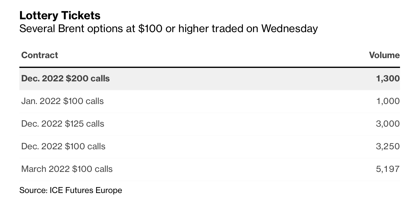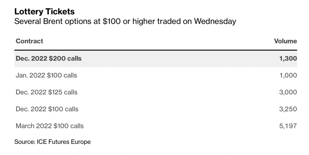 Alex Longley, Bloomberg, writes about deep out of the money options trading in Brent oil, here… And, yes, the calls were not just bought, they were sold, too.