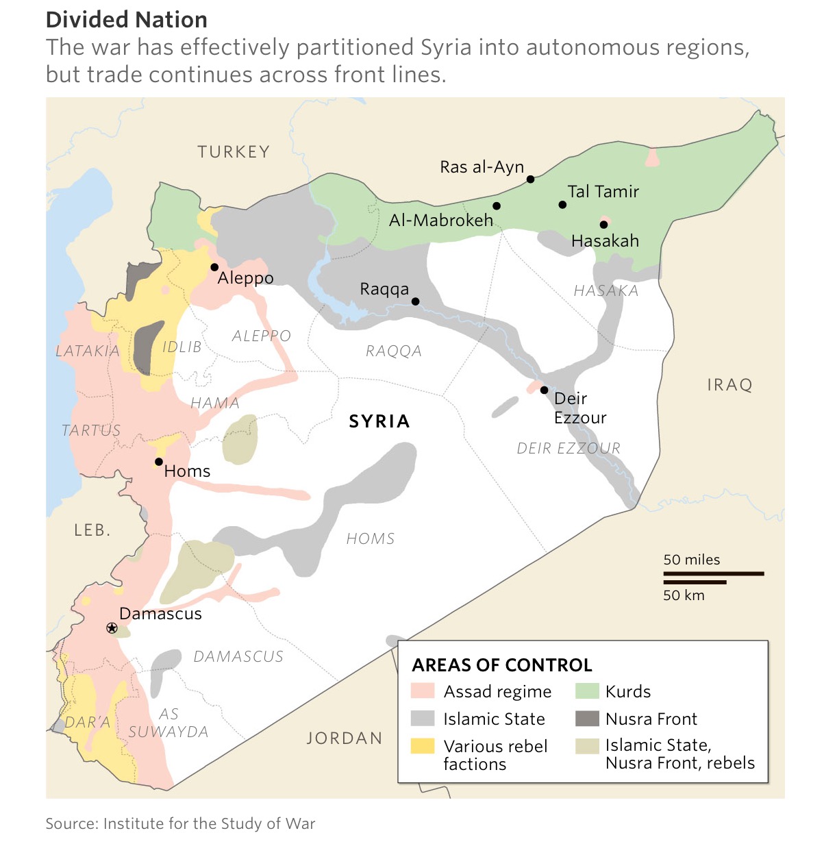 in Syria… This is from an excellent WSJ article on Syrians trying to survive by trading goods among warring factions: