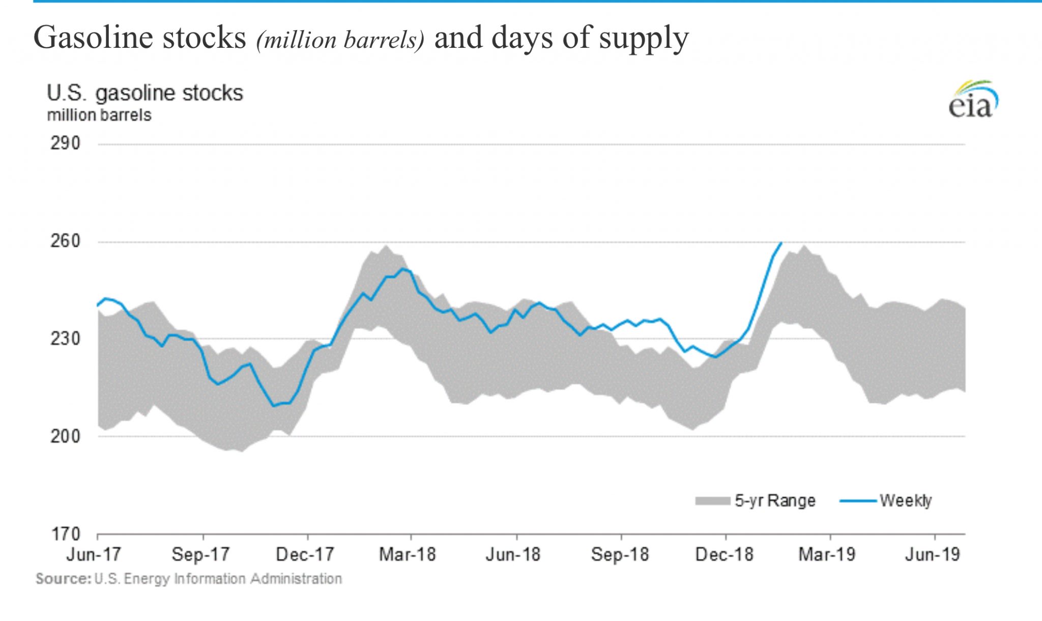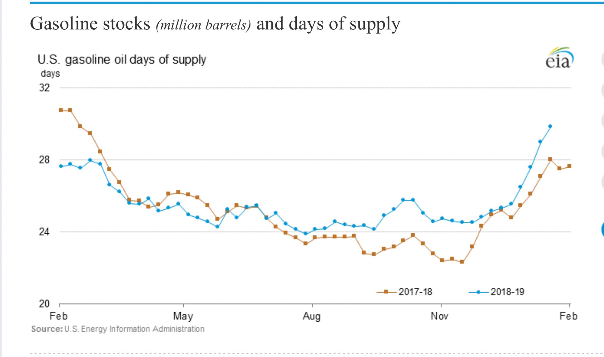 And, comparing stock levels to current demand, that is, days supply: