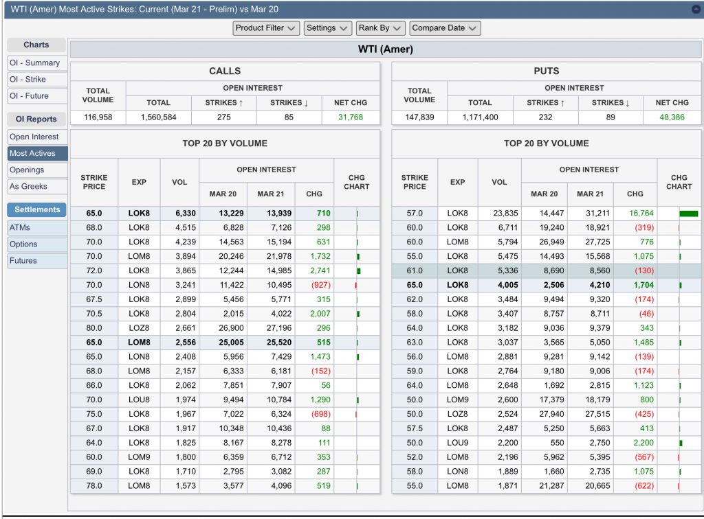 The May WTI $57 put stood out as the most actively traded option on the exchange yesterday, over 23,000 traded, settling at $.10: