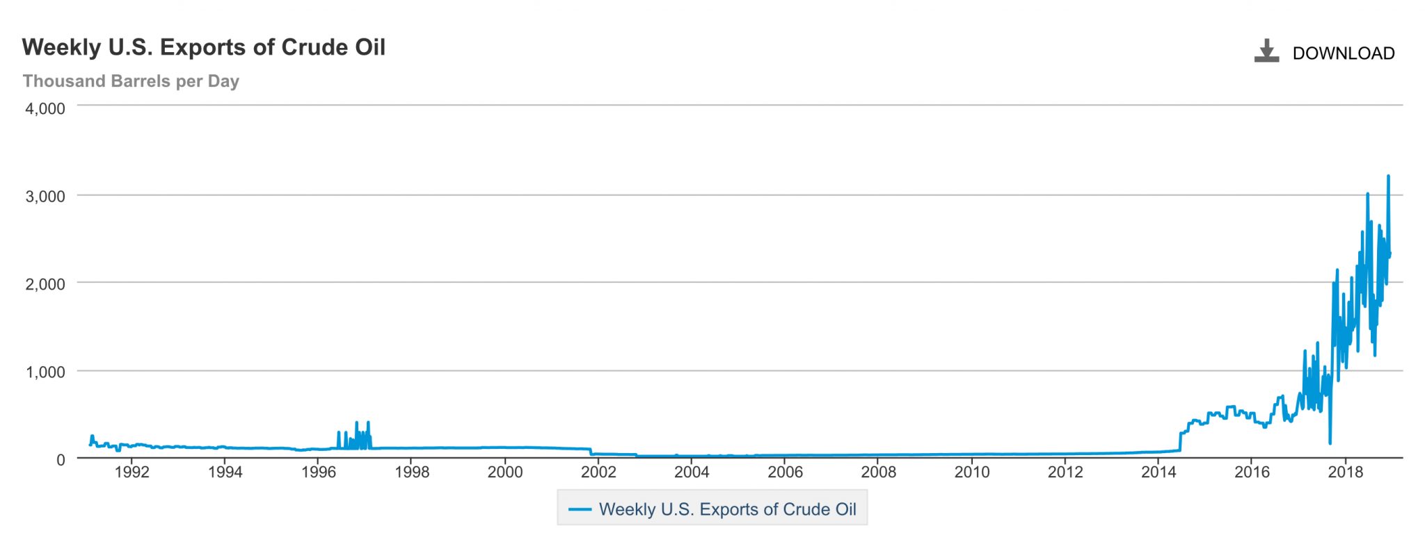 And this chart from the EIA (eia.gov) shows the recent surge in US oil exports: