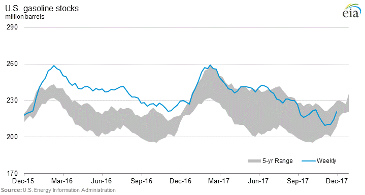 Gasoline stocks rose sharply this week… Refinery runs are over 17 million barrels a day!
