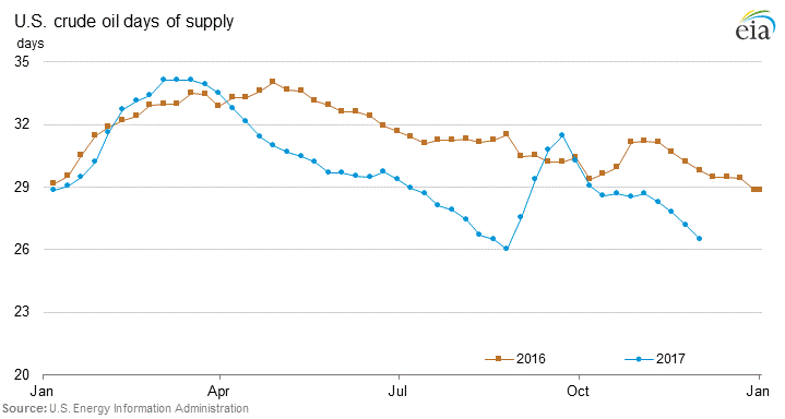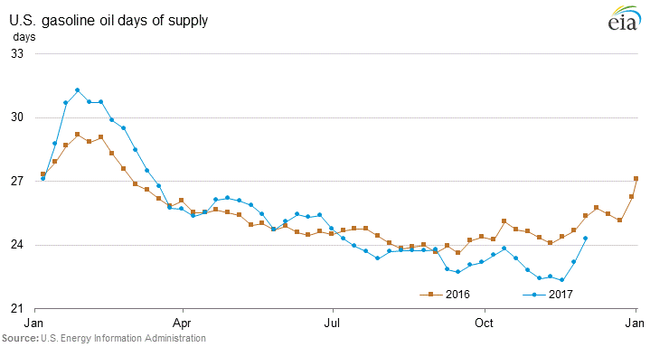 Here are some charts from the EIA’s This Week in Petroleum showing stock levels and days supply (stocks divided by demand):