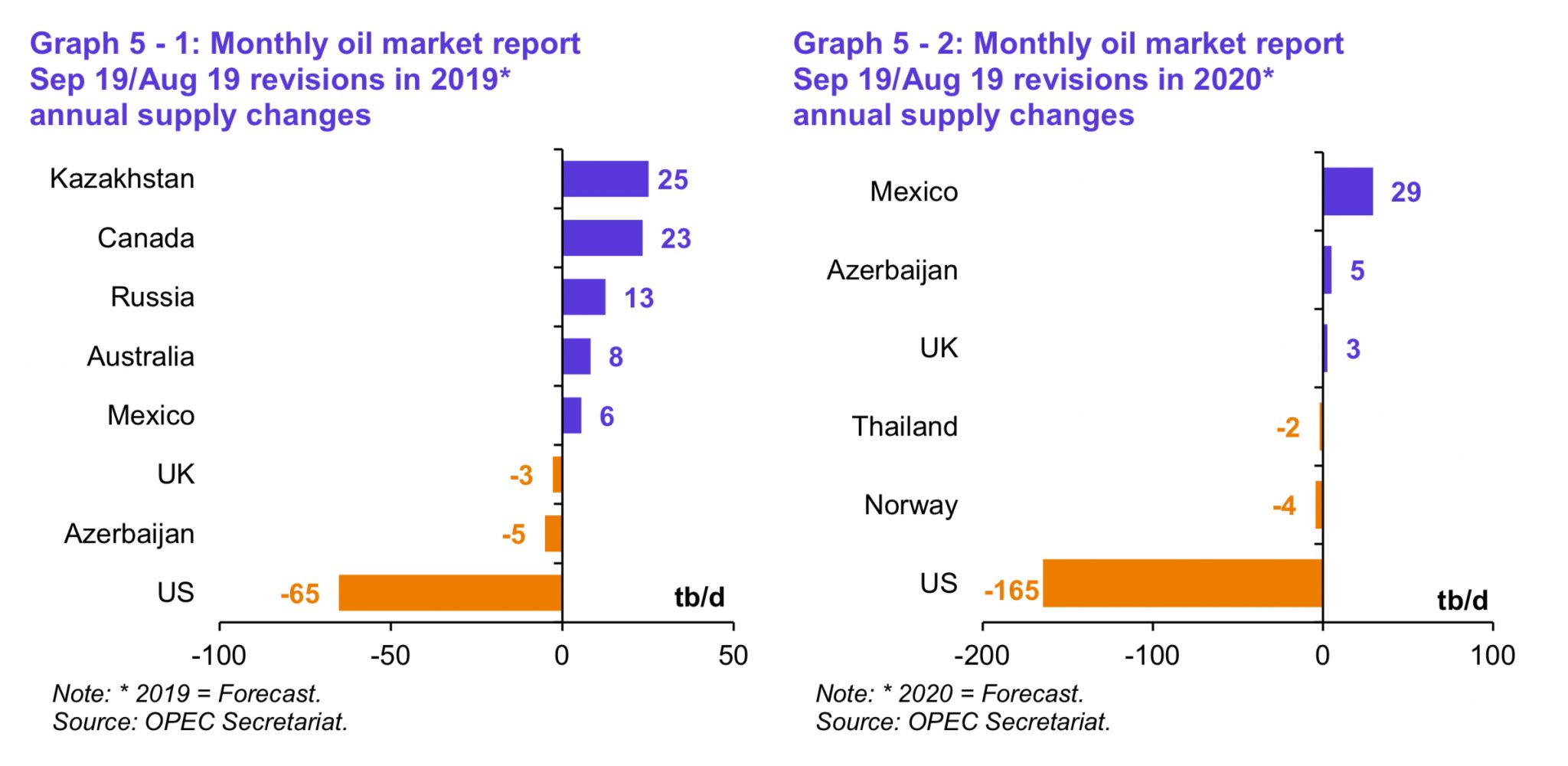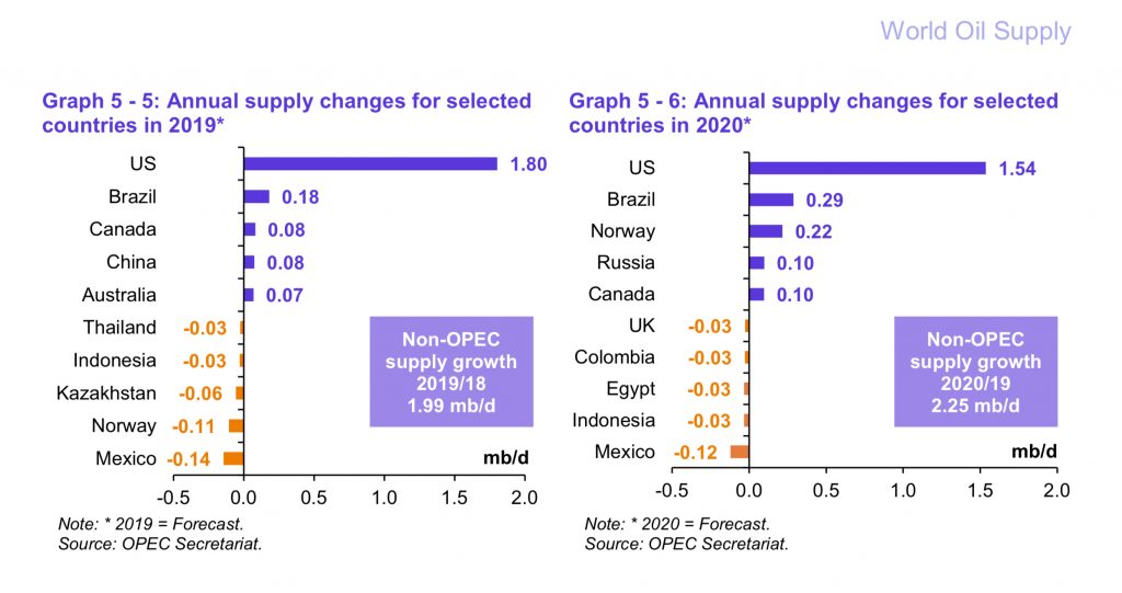 The monthly Oil Market Report from OPEC is always worth a look… Here is a chart with their revisions of non-OPEC supply for 2019 and 2020… The link is here…