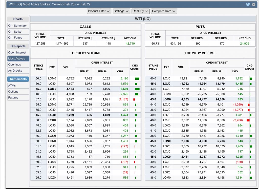 Similar pattern in yesterday’s trading as in the last few days… That is, above average volume, more puts trading but open interest climbing more on calls, and overall increase in vol but more in calls than puts…