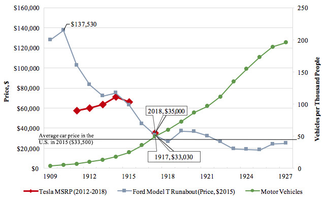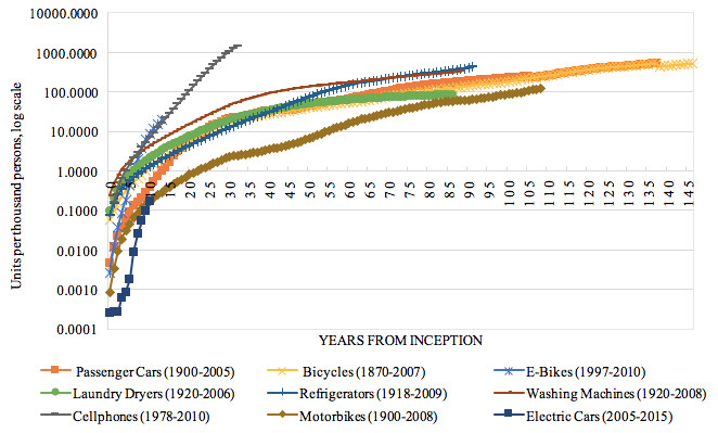 “The motor vehicle was very quick to replace horses in the early 20th century, and the advent of the electric car suggests that another profound shift in transportation and energy could be around the corner. This column projects how different rates of electric car adoption will effect oil demand and consumption over the next three decades. In a fast-adoption scenario, oil prices could converge to the level of current coal prices by the early 2040s. Even under a slow adoption scenario, oil could become obsolete before it is depleted.”
