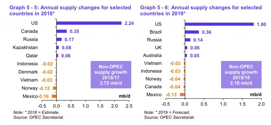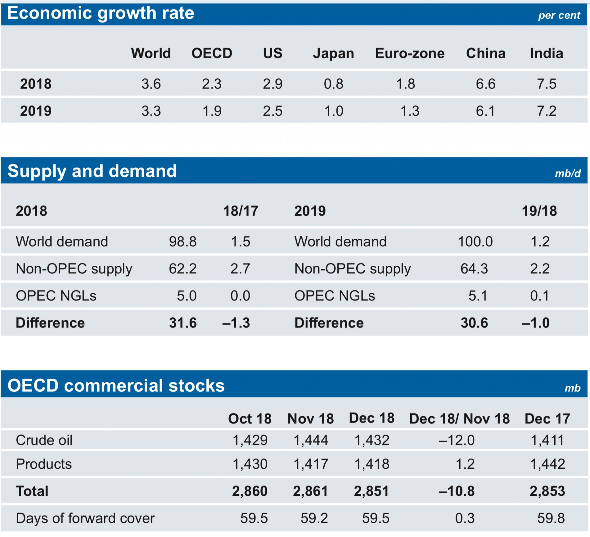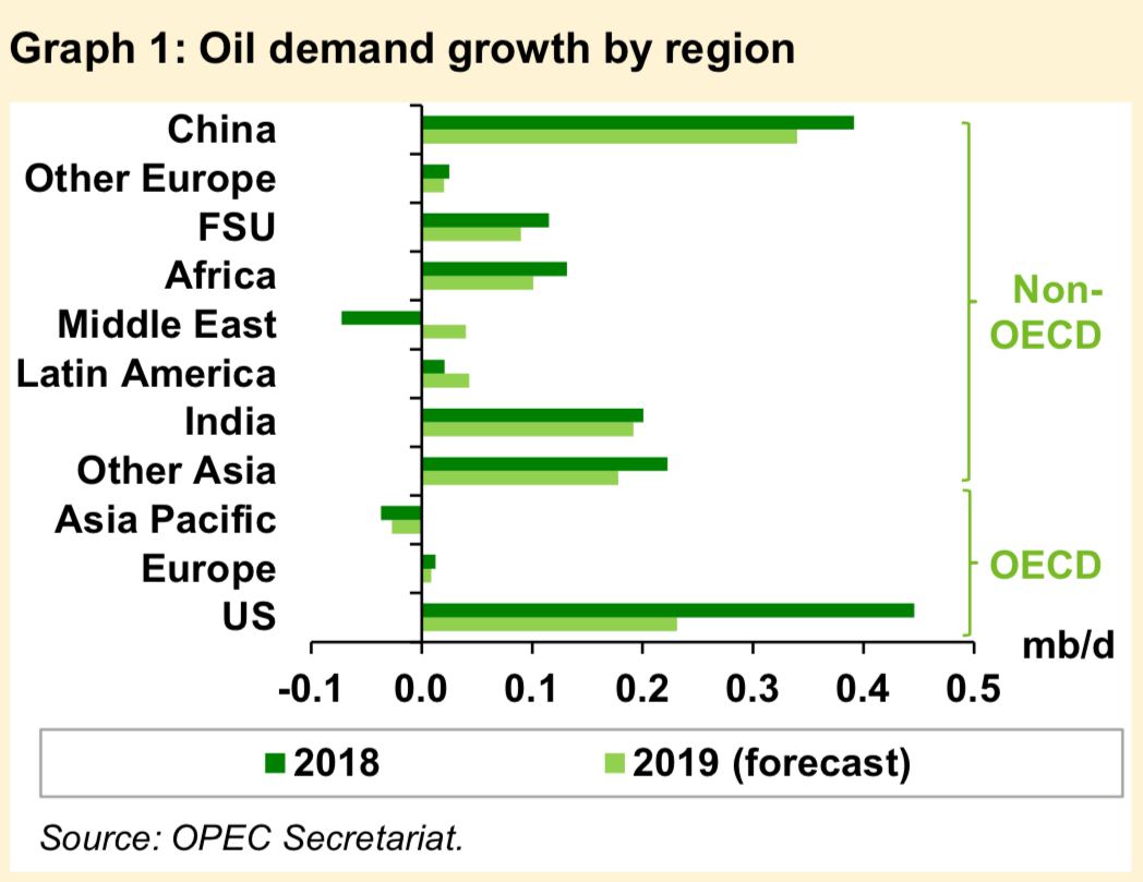 Despite the revisions of world GDP growth, OPEC is still looking for +1.24 mbd growth in demand… The call on OPEC oil production is 30.6 for 2019, -1.0 from 2018 which was -1.3 from 2017…